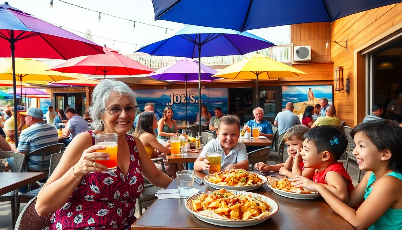 Joe’s offers a spacious outdoor seating area that allows guests to dine al fresco. The patio is equipped with ample tables and umbrellas, providing comfort on sunny days. Guests enjoy breathtaking views and a relaxing breeze while indulging in meals. The outdoor space often hosts live music events, adding to the vibrant atmosphere. This setup makes it a popular spot for families and friends to gather while enjoying the beautiful North Myrtle Beach weather.